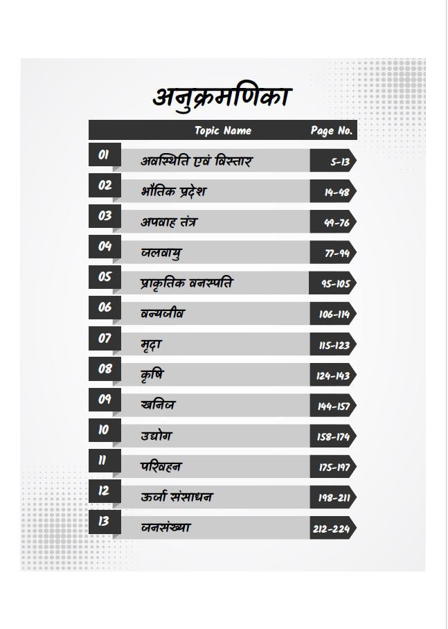 ● सभी प्रतियोगी परीक्षाओं के लिए उपयोगी: यह पुस्तक शिक्षक भर्ती ( KVS, NVS, 2nd Grade, 3rd Grade, REET, CTET, HTET, UPTET), Patwar, VDO, Police Constable, SI, SSC, बैंक, रेलवे आदि परीक्षाओं के लिए अत्यंत उपयुक्त है। राज्य विशेष परीक्षाओं में भारत का भूगोल हमेशा एक महत्वपूर्ण विषय रहा है और यह पुस्तक उस आवश्यकता को पूर्ण करती है।